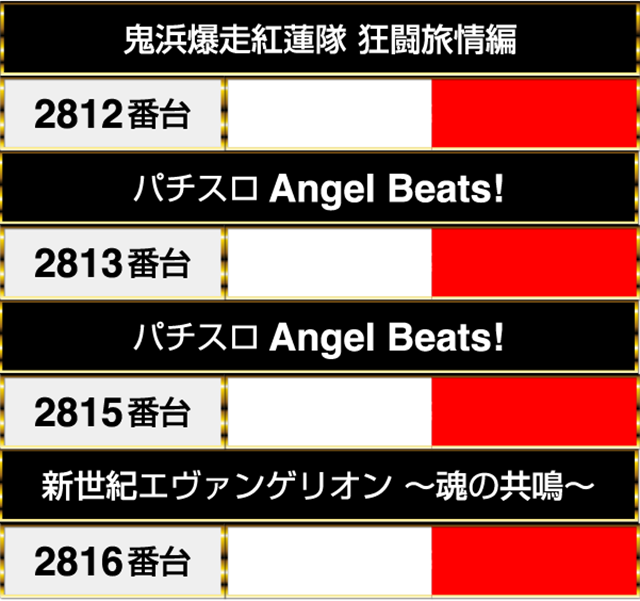 2812番台の『鬼浜爆走紅蓮隊 狂闘旅情編』から2816番台の『新世紀エヴァンゲリオン 〜魂の共鳴〜』までも並んでプラスptを記録した。