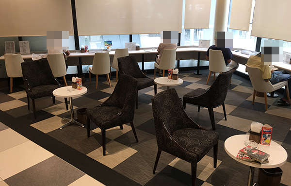 広々としたレストコーナーには、マンガ本や雑誌が充実。食事もとれるようになっているため、気軽に休憩ができそうだ。