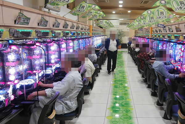 14時頃の4円パチンコでは、「CRスーパー海物語IN沖縄3」などの海物語シリーズが盛況。遊技をしているプレイヤーの表情は明るく、心から楽しめていることが伝わってきた。