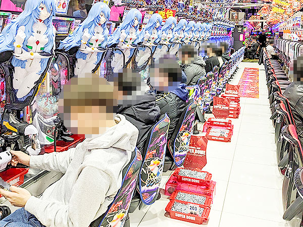 14時半ごろの4円パチンコをチェックすると「ぱちんこ シン・エヴァンゲリオン Type レイ」や「スマパチ シン・エヴァンゲリオン Type カヲル」が盛況の様子。機種性能を上手く引き出すプレイヤーを複数目撃している。