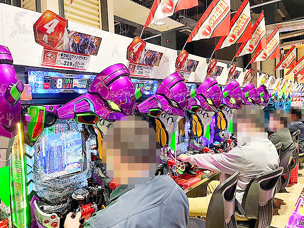 14時ごろの4円パチンコを見てみると「P大海物語5」や「新世紀エヴァンゲリオン〜未来への咆哮〜」が盛況の様子。機種のポテンシャルを上手く発揮するプレイヤーを多数確認している。