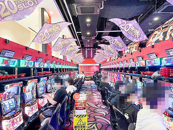 店内には老若男女を問わずプレイヤーが集合。パチンコ・パチスロの各シマから活気が感じられた。