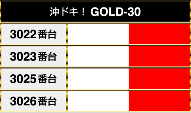 『沖ドキ!GOLD-30』も4台並びでプラスptとなった。