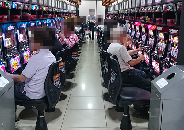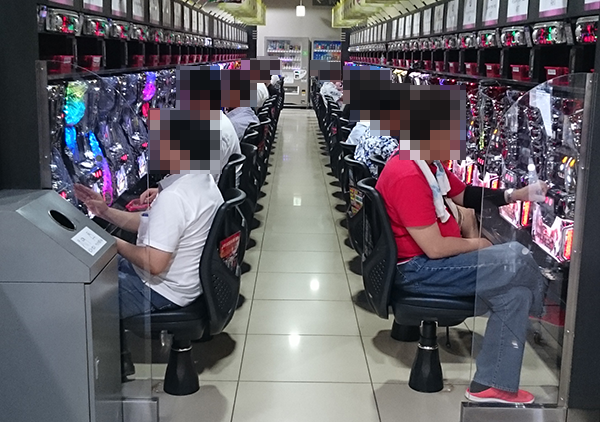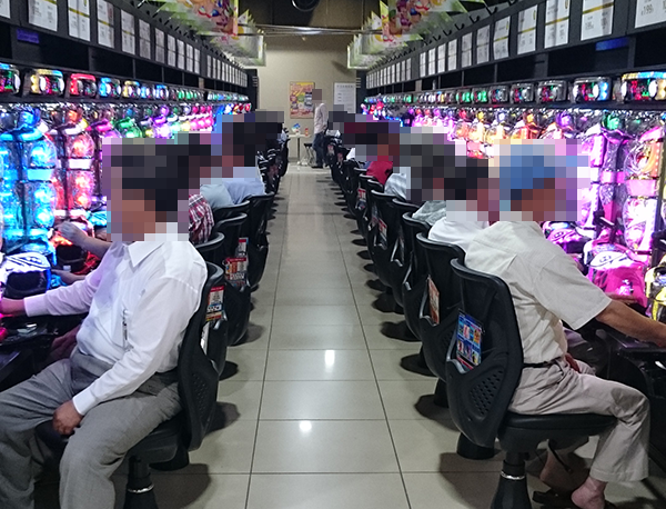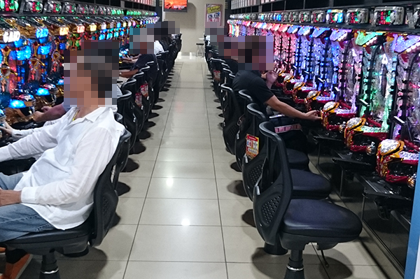 4円パチンコのなかで、とくに人気を集めていたのは「CR牙狼 魔戒ノ花」。笑みを浮かべているプレイヤーも多く、楽しい時間を過ごせていることがうかがえた。