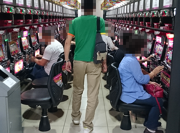 14時頃の20円パチスロでは、「沖ドキ!」や「ミリオンゴッド-神々の凱旋-」などが盛況。盛り上がりが大きく、充実感を得られているプレイヤーも多いように思えた。