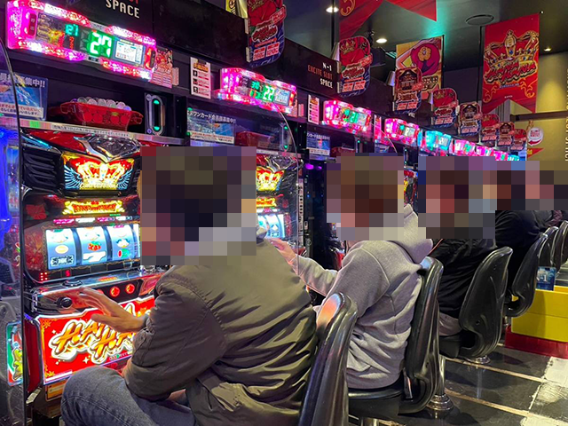 楽しそうに遊技をおこなっているプレイヤーが多く、機種全体がにぎやかなムード。