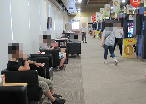 1円パチンコのにぎわいも大きく、とくに海物語シリーズはほぼ満席となっていた。