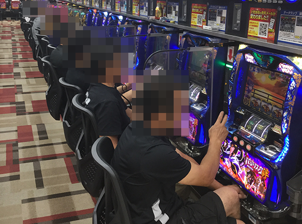 15時頃のホール内をみると、1000円/47枚パチスロの「バジリスク~甲賀忍法帖~絆」や「SLOT魔法少女まどか☆マギカ」などに、華麗なパフォーマンスを披露しているプレイヤーを目撃。ひときわ楽しそうな雰囲気が感じられた。