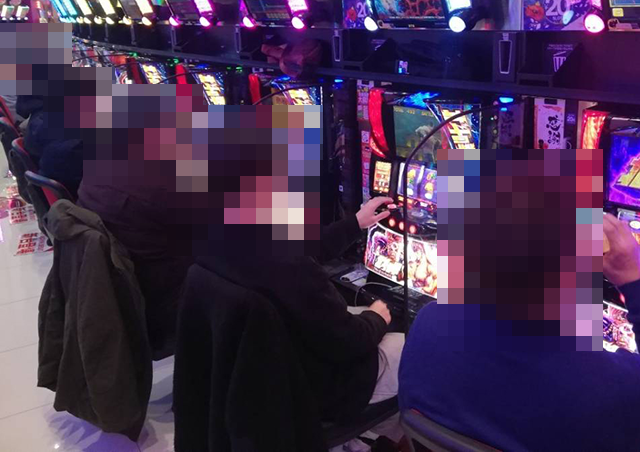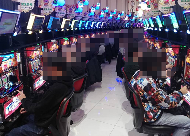 「マイジャグラーⅤ」も人気があり、明るい表情をみせるプレイヤーがズラリと並んでいた。