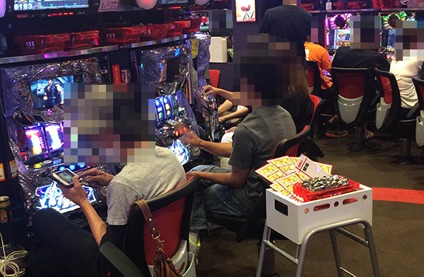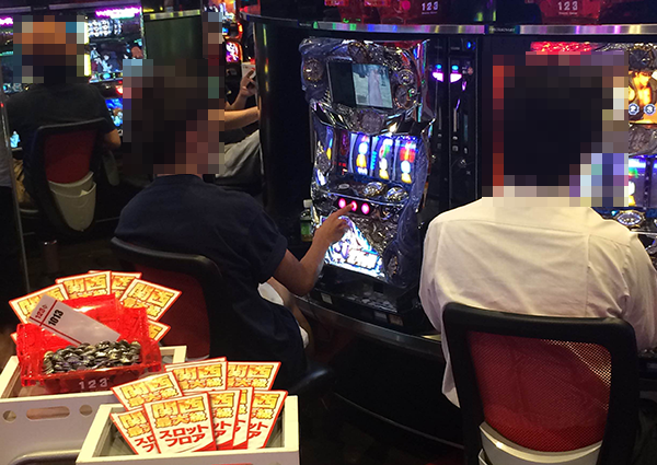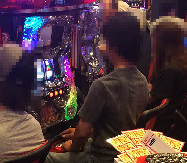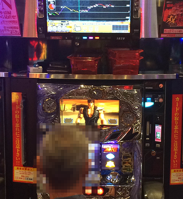 「パチスロ北斗の拳 強敵」をみると、しあわせそうな表情で遊技をおこなうプレイヤーが多数。