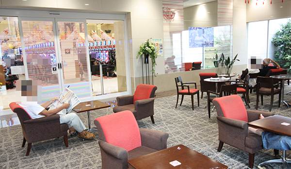 また、自動ドアで区切られたレストコーナーも完備。室内は落ち着いた雰囲気となっており、休憩中や空き台を待つ時間も快適に過ごせることだろう。