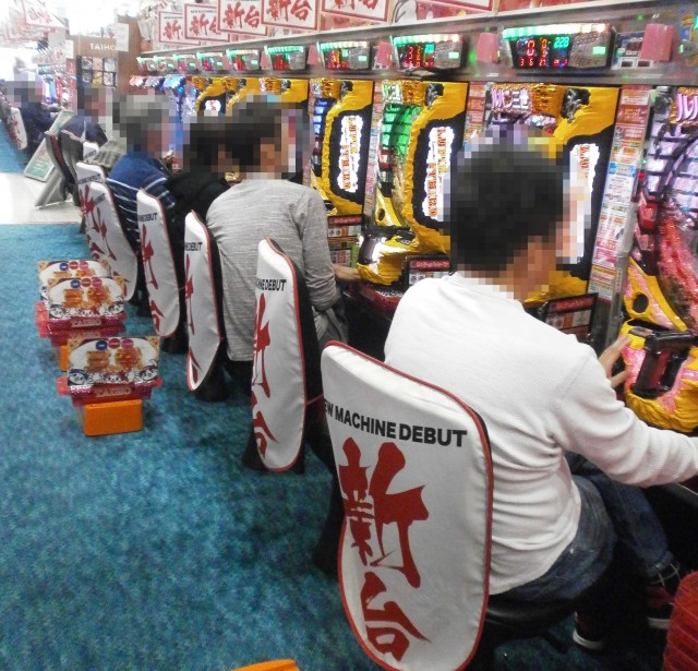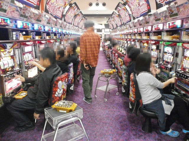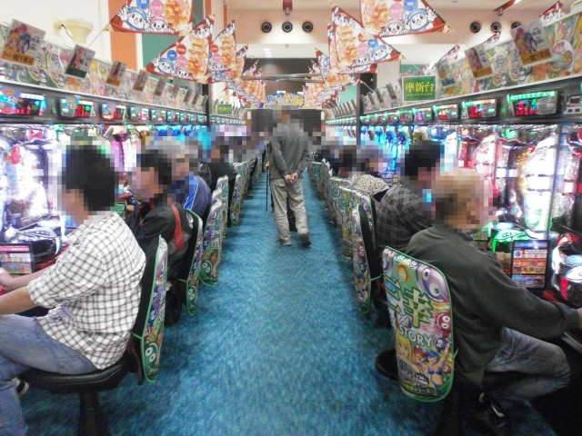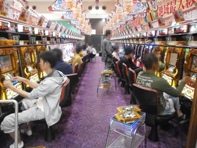 低貸し1円パチンココーナーは大盛況。空き台を探すのも大変なほど稼働が続いていた。