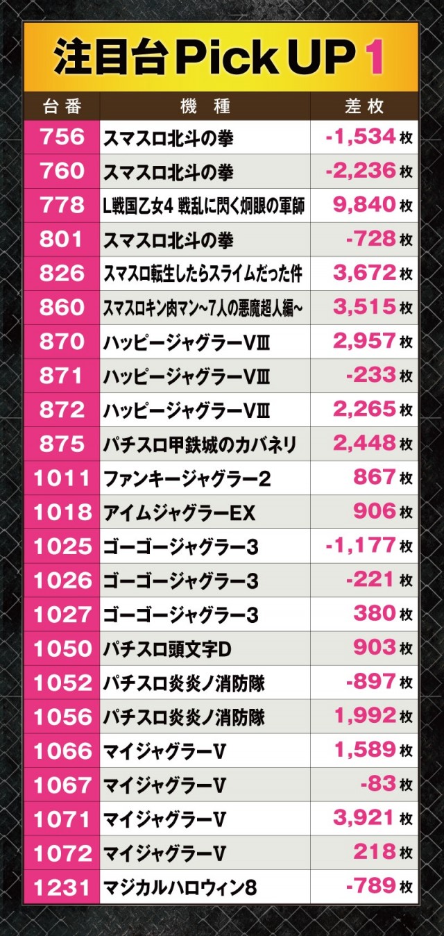 さらに『マイジャグラーⅤ』をはじめとするジャグラーシリーズからも多くの好調台が誕生しており、店内のどこにでも大きなチャンスがあったようだ。この結果を踏まえて、是非、次回降臨時の参考にしてしてくれ!