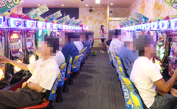 5円パチスロも厚く支持されており、空き台は少ない。