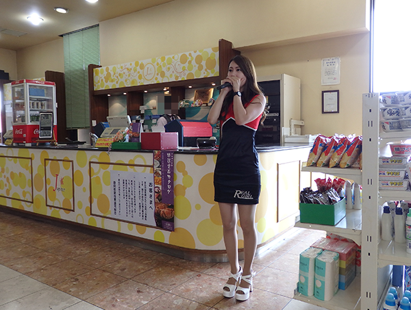 この日、リサちゃんはアナウンスもお手伝い。