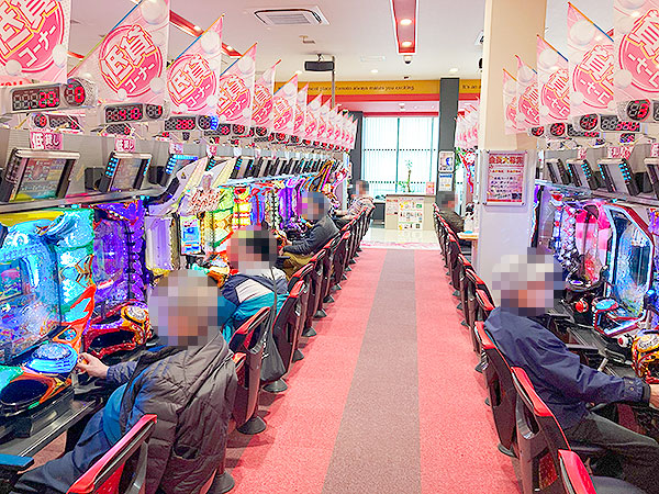 取材時は貸し玉料金に関係なくプレイヤーでにぎわっており、各シマとも明るい雰囲気に包まれていた。