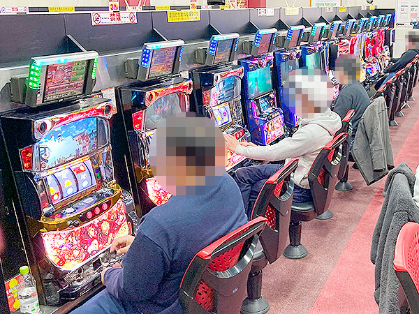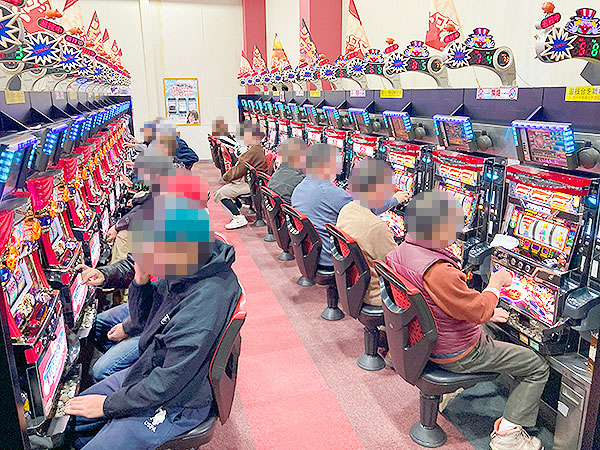5円パチスロの稼働も高い。楽しそうにレバーを叩くプレイヤーの姿を複数目撃している。