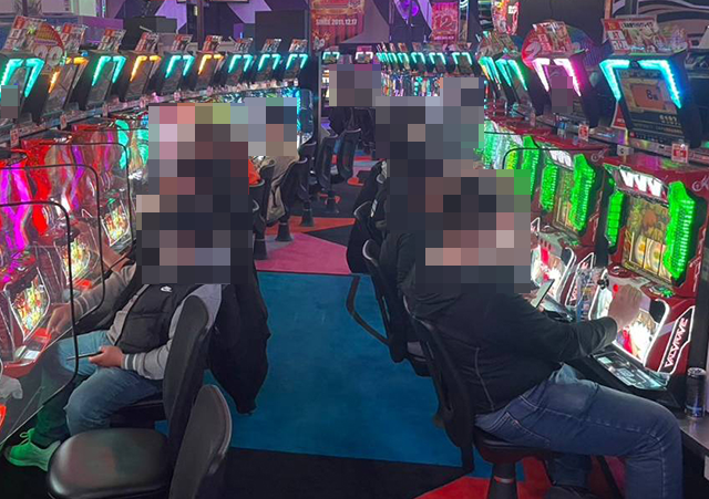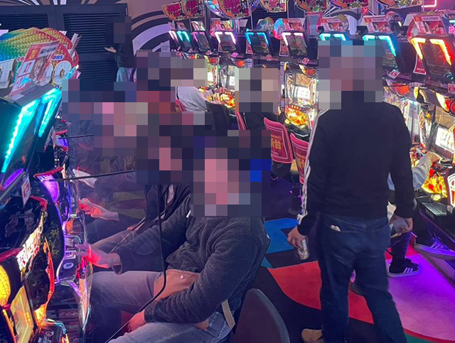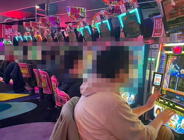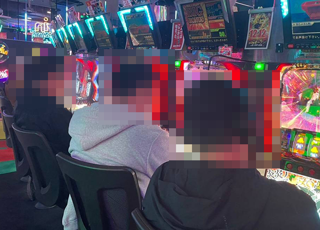うれしそうに遊技をおこなっているプレイヤーが並び、3箱クラスの持ち玉を確認した。