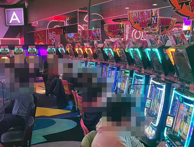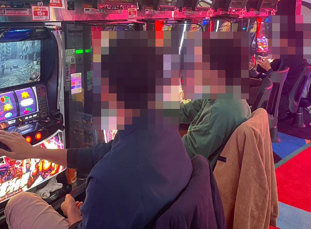 スマスロをはじめ、あちこちに楽しそうな光景が広がっていた「スロットZAP竹尾店」。