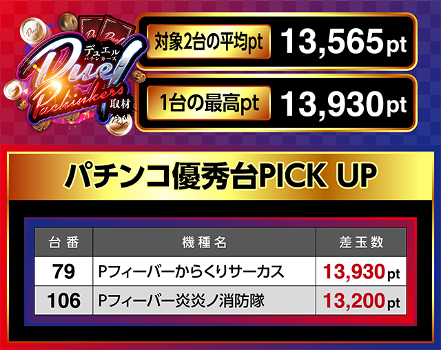 106番台の「Pフィーバー炎炎ノ消防隊」も13,000ptを上回った。