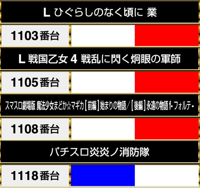 最新機種である『L ひぐらしのなく頃に 業』の1103番台もプラスptを記録。