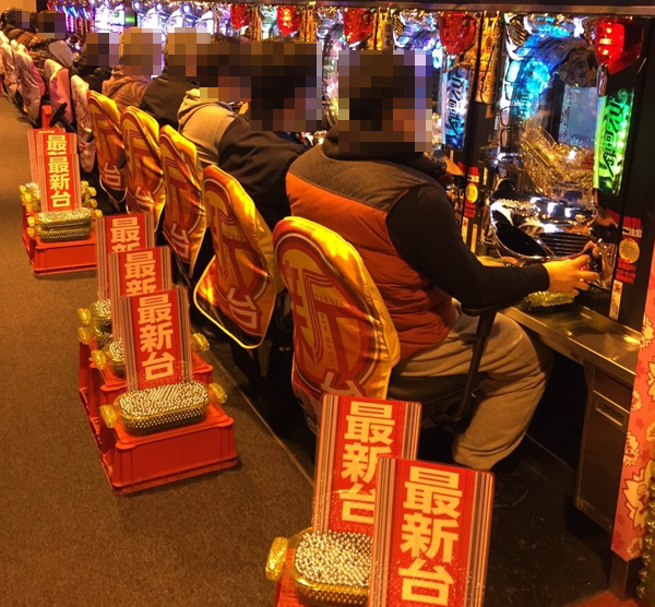 開店後は30台あるパチスロの新台「サラリーマン金太郎 出世回胴編」が即満席。