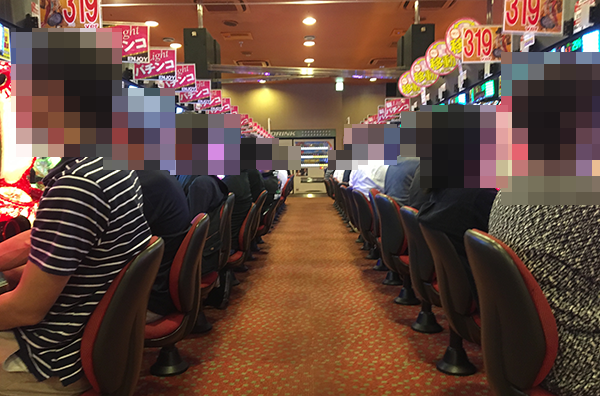 100円/93玉パチンコにも空き台はほとんど見当たらない。