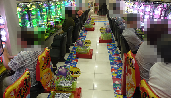 4円パチンコでは、「ぱちんこCR真・北斗無双」が好評。華やかな光景のなかには、プレイヤーたちの笑顔も広がっていた。