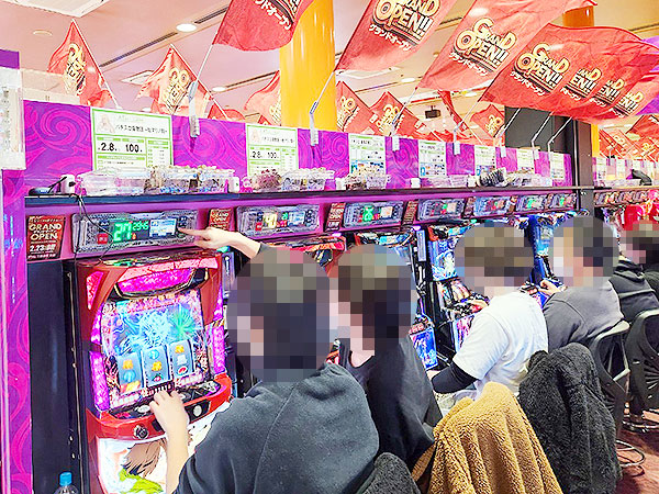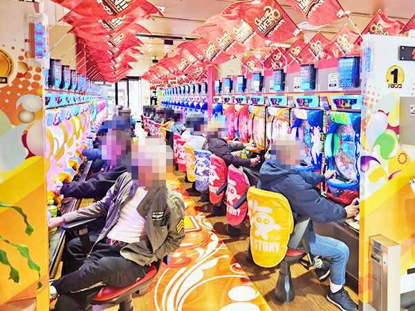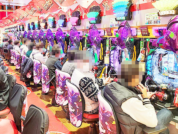 14時ごろの4円パチンコでは、「新世紀エヴァンゲリオン〜未来への咆哮〜」や「P大海物語5」、「P大海物語5 ブラック」などでプレイヤーが華麗なパフォーマンスを披露。微笑ましいシーンを随所で目にしている。