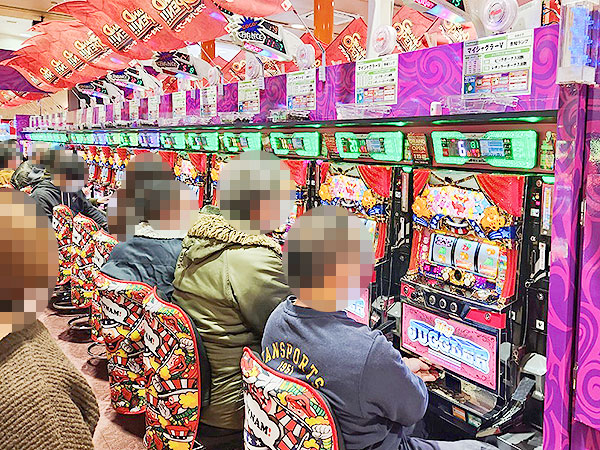 5円パチスロの稼働も高い。プレイヤーたちが楽しそうにレバーを叩く姿を目撃している。