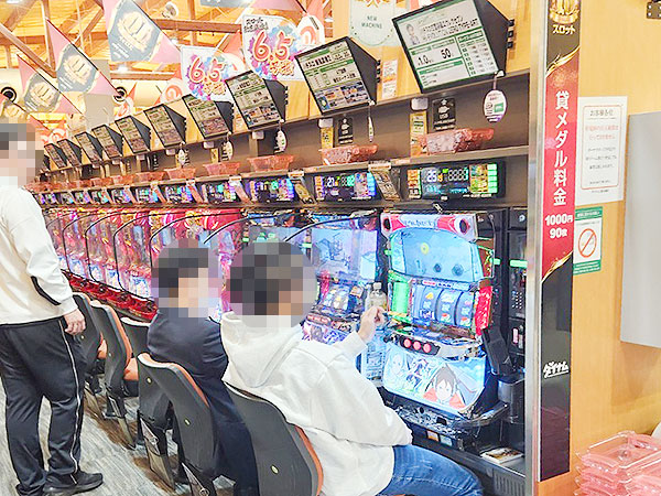 店内には老若男女を問わずプレイヤーが集まっており、パチンコ・パチスロの各シマから大いに盛り上がりが感じられた。