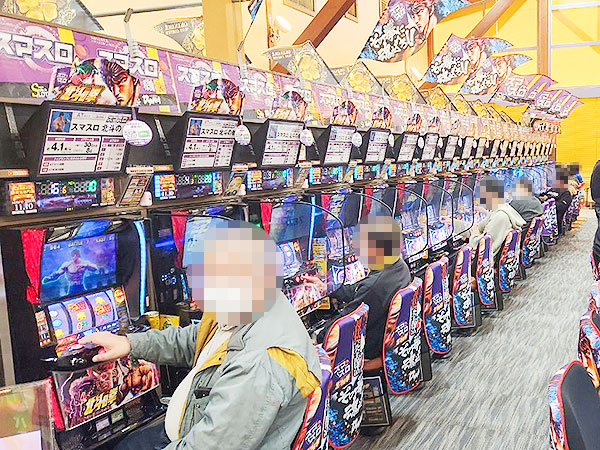 「スマスロ北斗の拳」や「キングハナハナ-30」も盛況で、機種性能をフルに活かすプレイヤーが見受けられた。