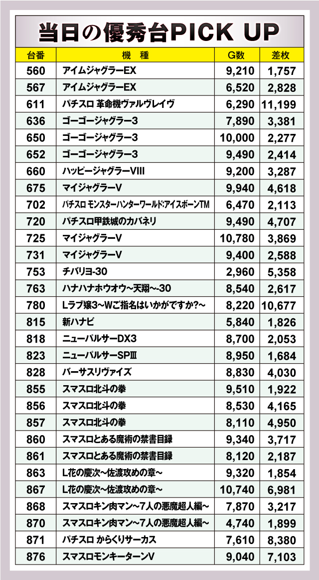 万枚超え2台出現! その他も良台多数確認!