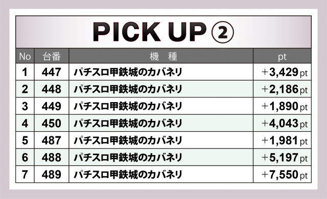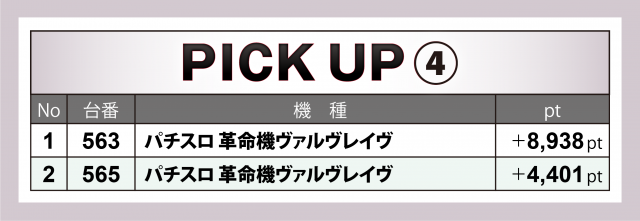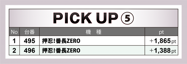 さらに核となる3機種以外でも『パチスロ 革命機ヴァルヴレイヴ』が+9千目前&+4千4百超を1台ずつマーク、ベテランマシンである『押忍!番長ZERO』も横並びで1,000overを記録した。
