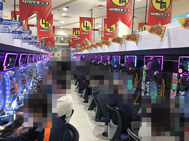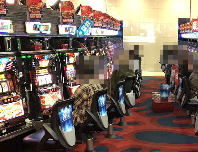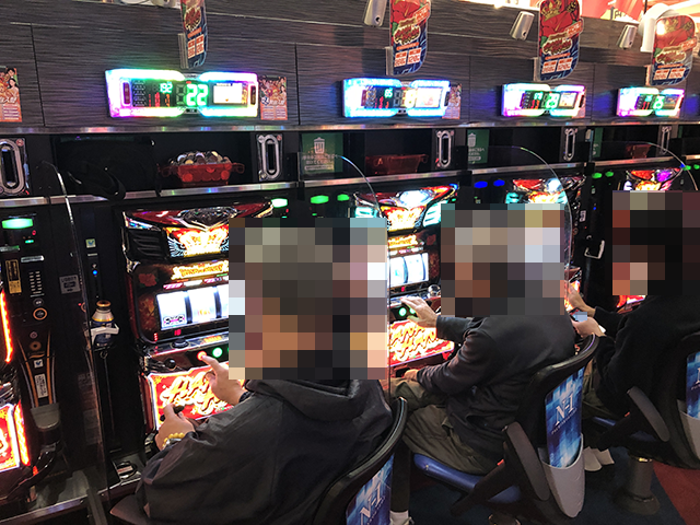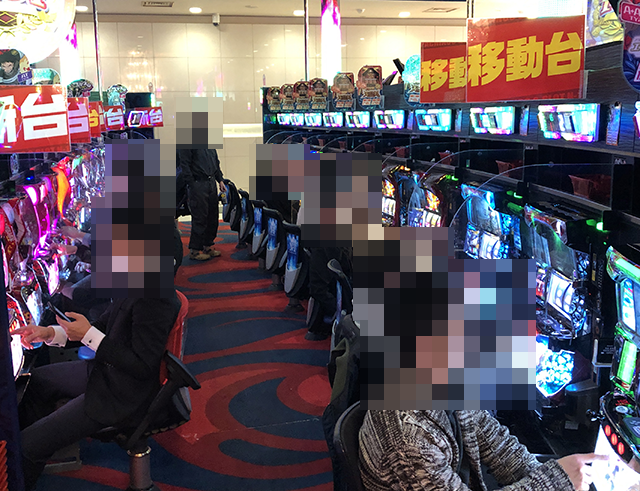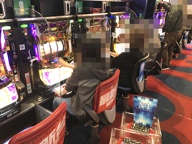 1箱以上の持ち玉で遊技をおこなっているプレイヤーの姿を確認。