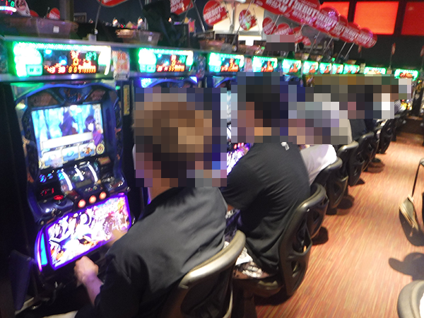 開店直後はパチスロが人気を集めており、ほぼ満席といった状態。