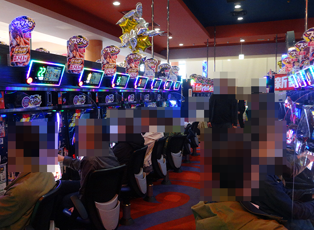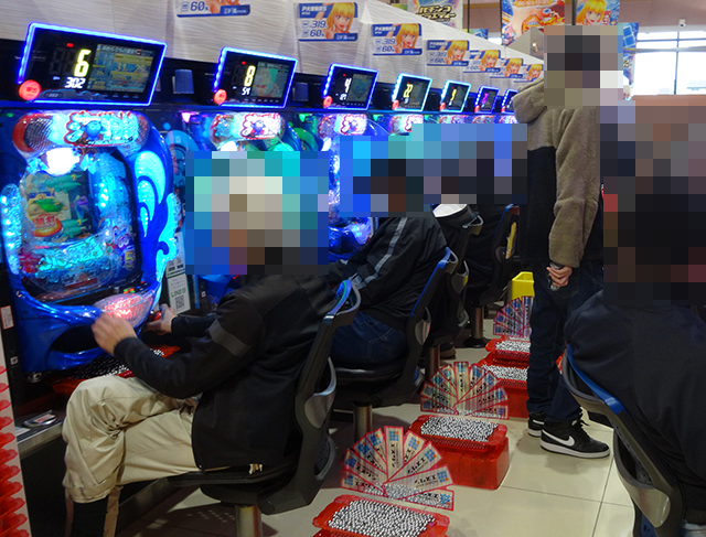 盛況となっていた「P大海物語5」をみると、満足げな表情で遊技をおこなっている姿が並んでいた。