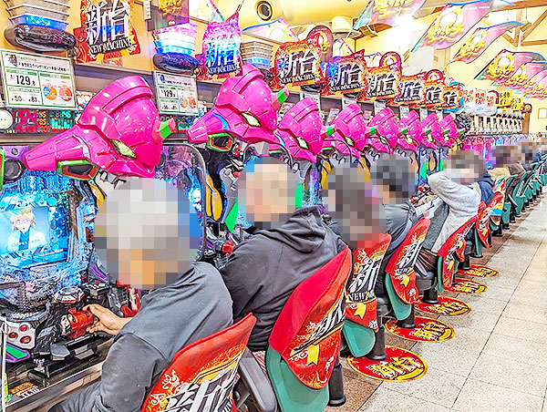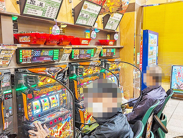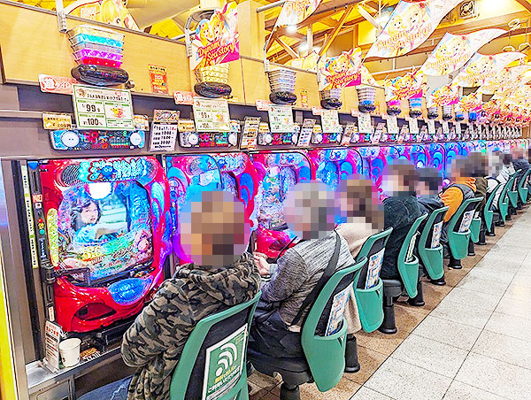 2円パチンコも好評の様子。老若男女を問わずプレイヤーでにぎわっていた。