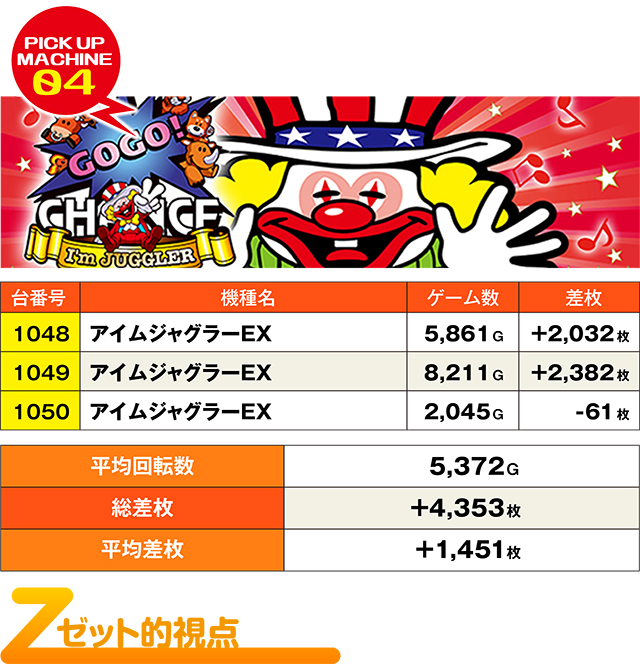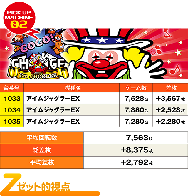 『パチスロ交響詩篇エウレカセブン HI-EVOLUTION ZERO TYPE-ART』顔負けのプラス結果を披露した『ゴーゴージャグラー3』。この日はとことん『ジャグラー』シリーズの強さが際立っていた模様。