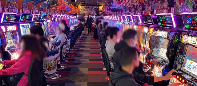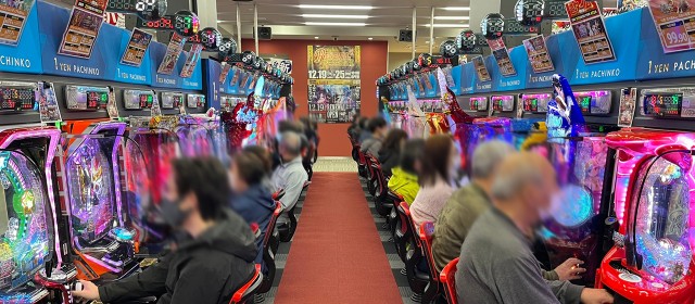 『シン・エヴァ』以外ではスマパチにファンがギッシリ。こちらも今まさに出玉が増加しようとしている台がチラホラ。