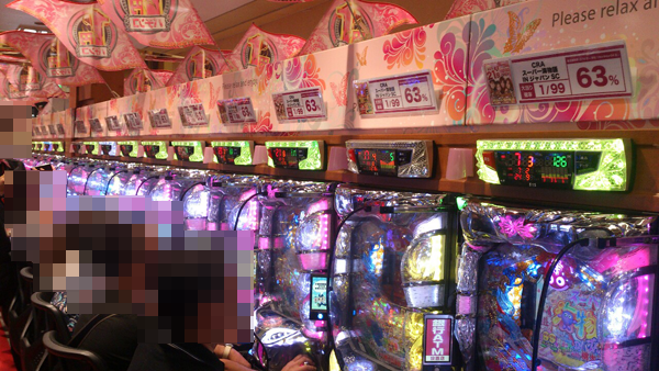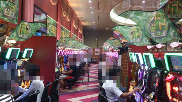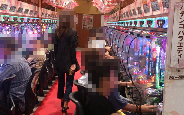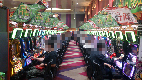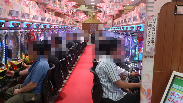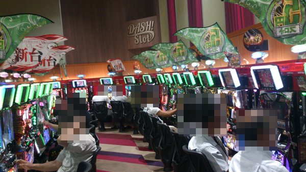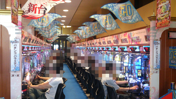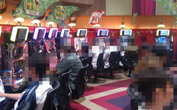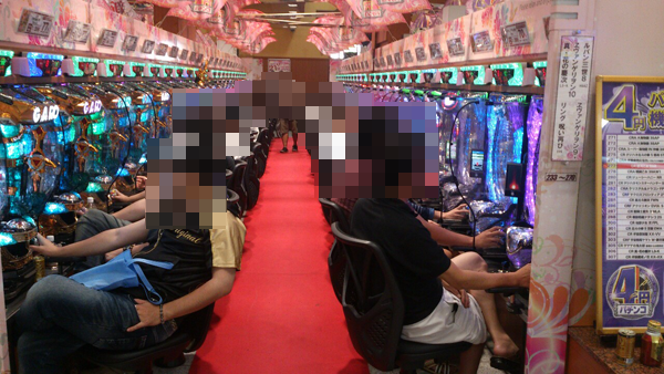 定番機種の海物語シリーズをはじめ、「CR牙狼 魔戒ノ花」や「ぱちんこCR真・北斗無双」など、うれしそうなプレイヤーが多数。