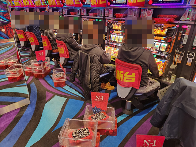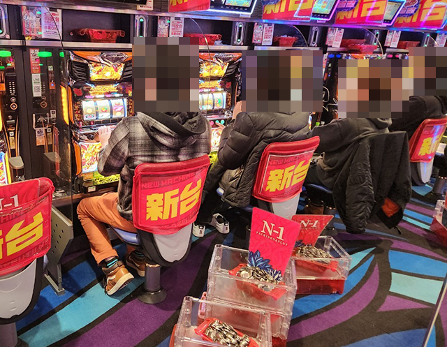 笑顔で遊技をおこなっているプレイヤーが並んでいる光景は、とても華やかであった。