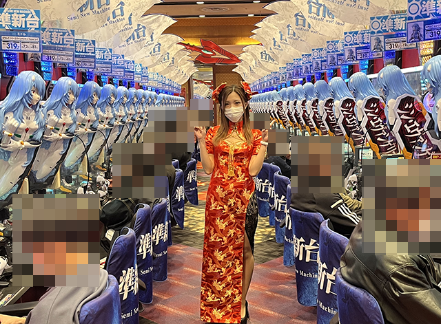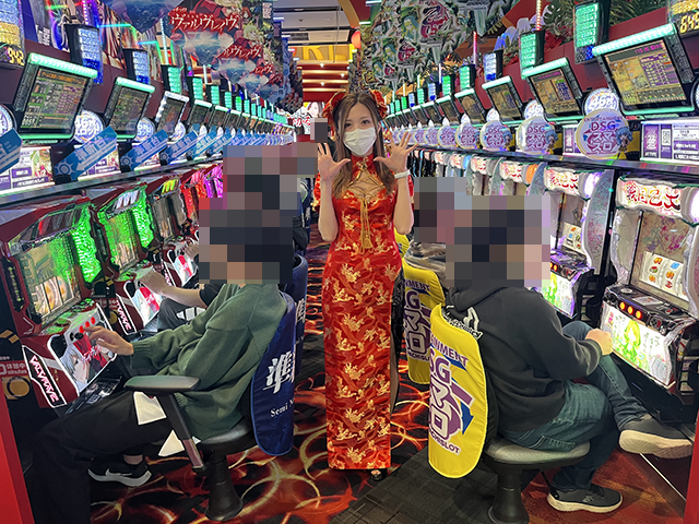 うれしそうに遊技をおこなうお客さまがいるなかで、ボーナスを積み重ね、笑顔で進めていました!