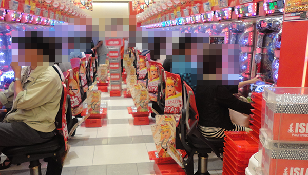 ジャグラーシリーズやハナハナシリーズには、シンプルな告知を味わっているといったプレイヤーが多数。華やかな光景からは、満足度の高さもうかがえた。