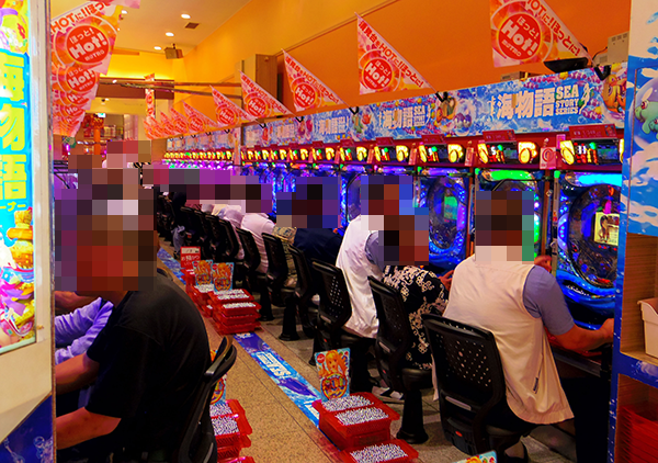 1円パチンコと5円パチスロにおいても、多数のプレイヤーが遊技を楽しんでいた。