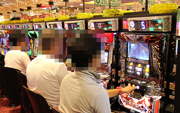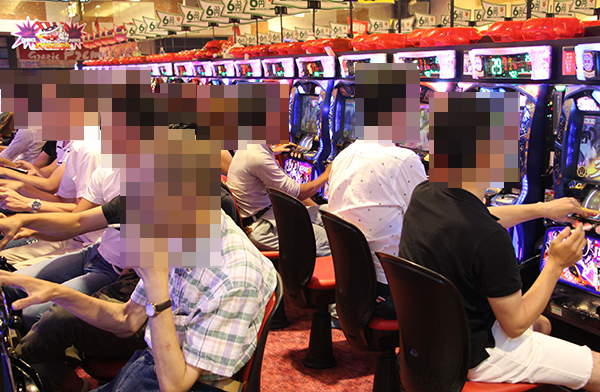 15時ごろにはパチスロの盛り上がりがとくに大きく、6.25円パチスロの「バジリスク~甲賀忍法帖~絆」や「パチスロ北斗の拳 強敵」が盛況。