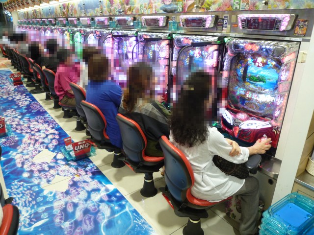 「海物語シリーズ」も大盛況となっており、楽しそうな笑顔をみせるプレイヤーが多数。