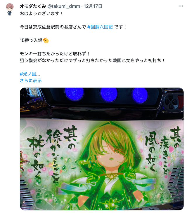 ぱちタウン軍の3人目の武将としてオモダたくみが参戦!田中逆回転・孔明と同じく六国制圧を目指していく。先輩武将たちと異なるアプローチで六か国の制圧を目指して実戦していくようだ。その舞台となるのは、ここ数回の結果がずば抜けて良好な「ウエスタン佐倉店」。