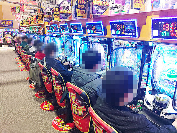 取材時は貸し玉料金に関係なくプレイヤーでにぎわっており、各シマとも明るい雰囲気に包まれていた。