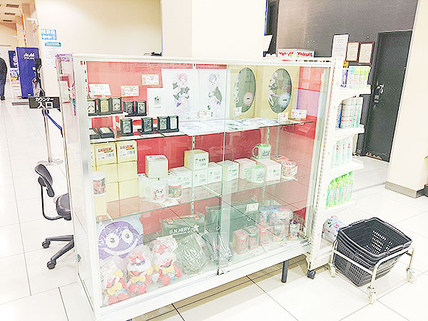 景品コーナーには人気機種のグッズが並んでおり、多くのプレイヤーから注目を浴びていた。